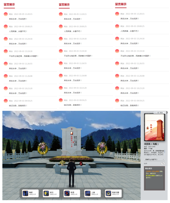 該網(wǎng)上祭拜活動(dòng)介紹了郁南縣抗日戰(zhàn)爭時(shí)期視死如歸、寧死不屈,拋頭顱灑熱血,以身殉國的英烈事跡。向廣大黨員群眾詮釋了抗戰(zhàn)勝利果實(shí)來之不易,鼓勵(lì)著每一個(gè)人沿著前人的腳步,砥礪前行。網(wǎng)上拜祭活動(dòng)可以通過手機(jī)掃碼登錄中華英烈網(wǎng)和廣東英烈網(wǎng)向烈士墓碑敬獻(xiàn)鮮花,寄托對英雄烈士的哀思。據(jù)統(tǒng)計(jì),有300多人參加了網(wǎng)上祭英烈。