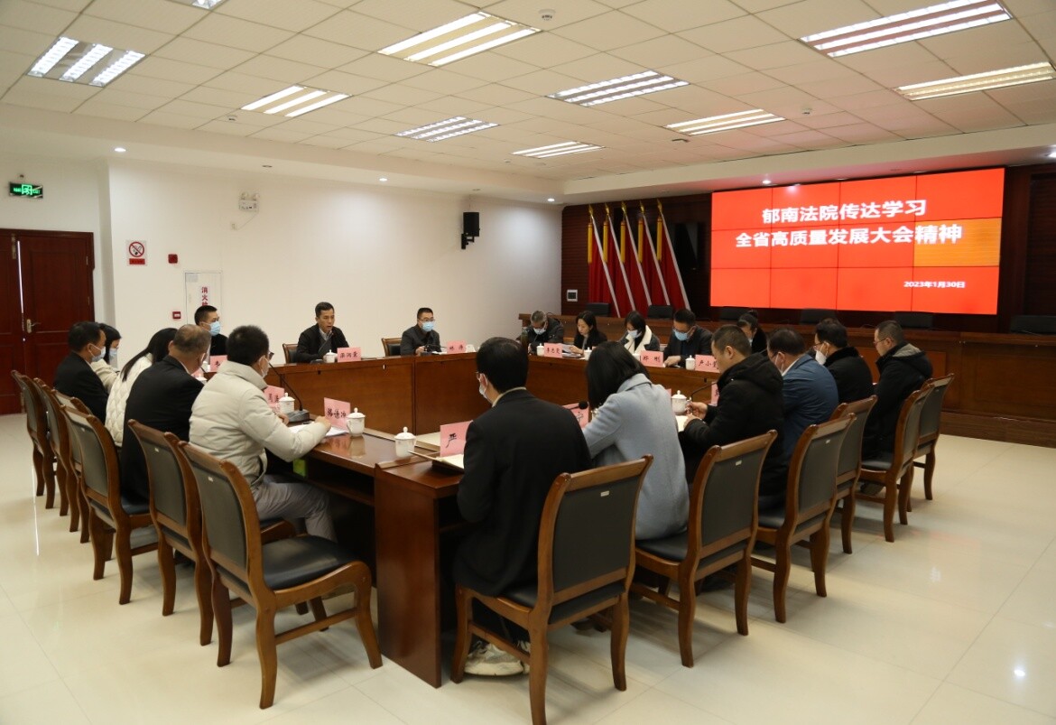 會(huì)議強(qiáng)調(diào),全院要提高政治站位,深刻認(rèn)識(shí)到推動(dòng)高質(zhì)量發(fā)展的重要性,切實(shí)增強(qiáng)責(zé)任感緊迫感,主動(dòng)擔(dān)當(dāng)作為,認(rèn)真貫徹落實(shí)省委省政府關(guān)于高質(zhì)量發(fā)展的部署要求。要堅(jiān)持依法履職盡責(zé),緊扣高質(zhì)量發(fā)展主線和全縣發(fā)展大局抓好法院各項(xiàng)工作,充分發(fā)揮審判職能,持續(xù)優(yōu)化法治化營(yíng)商環(huán)境,著力提升訴訟服務(wù)水平,切實(shí)辦好為民實(shí)事,為轄區(qū)經(jīng)濟(jì)社會(huì)高質(zhì)量發(fā)展提供有力司法保障。要進(jìn)一步壓實(shí)責(zé)任,加強(qiáng)審判管理和部門協(xié)作,提升審判執(zhí)行質(zhì)效,堅(jiān)持以高質(zhì)量審判服務(wù)高質(zhì)量發(fā)展,全力支持和服務(wù)制造業(yè)當(dāng)家、“百縣千鎮(zhèn)萬(wàn)村高質(zhì)量發(fā)展工程”和綠美廣東生態(tài)建設(shè),為郁南打造更高質(zhì)量更高水平的“生態(tài)之都、宜居之城”貢獻(xiàn)法院力量。