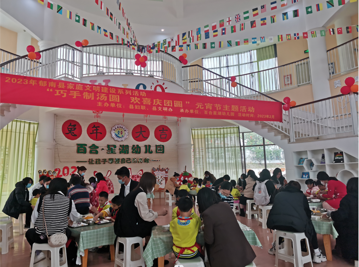 為深入貫徹落實(shí)習(xí)近平總書(shū)記關(guān)于家庭家教家風(fēng)建設(shè)的重要論述,弘揚(yáng)和傳承中華優(yōu)秀傳統(tǒng)文化,培育和踐行社會(huì)主義核心價(jià)值觀,推進(jìn)家庭文明建設(shè)。2月3日,郁南縣婦聯(lián)、縣文明辦在百合星湖幼兒園開(kāi)展“巧手制湯圓 歡喜慶團(tuán)圓 ”元宵節(jié)主題活動(dòng),近20多對(duì)親子家庭參加了活動(dòng)。