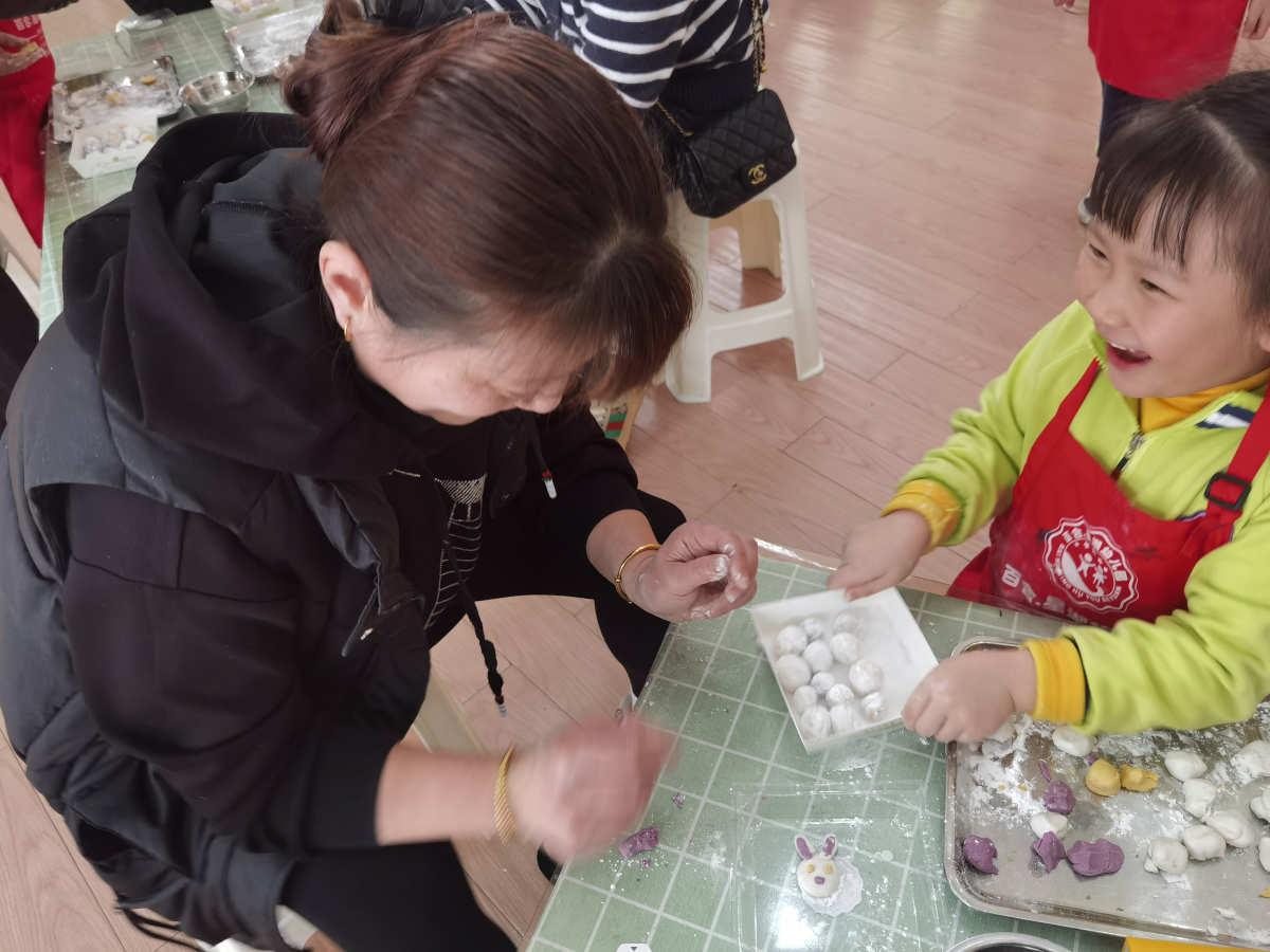 隨后,工作人員拿出準(zhǔn)備好的糯米粉、餡料教小朋友們包湯圓。在手工制作環(huán)節(jié)中,親子們戴上手套,家長(zhǎng)一邊教小朋友們和面團(tuán)、制作餡料、捏分小團(tuán)、包餡揉搓,一邊與孩子溝通交流元宵節(jié)吃湯圓的習(xí)俗、吃湯圓有什么意義?大家在制作湯圓過(guò)程中分工合作又齊心協(xié)力,配合默契,其樂(lè)融融。不一會(huì)兒,代表團(tuán)團(tuán)圓圓的手工湯圓在一雙雙巧手下就做了滿滿幾桌,看著自己親手制作的各種形態(tài)不一、五顏六色的湯圓,孩子們特別開(kāi)心,歡聲笑語(yǔ)連連。工作人員將湯圓一個(gè)個(gè)放進(jìn)開(kāi)水鍋煮,親子家庭們一起品嘗自己親手做的湯圓。