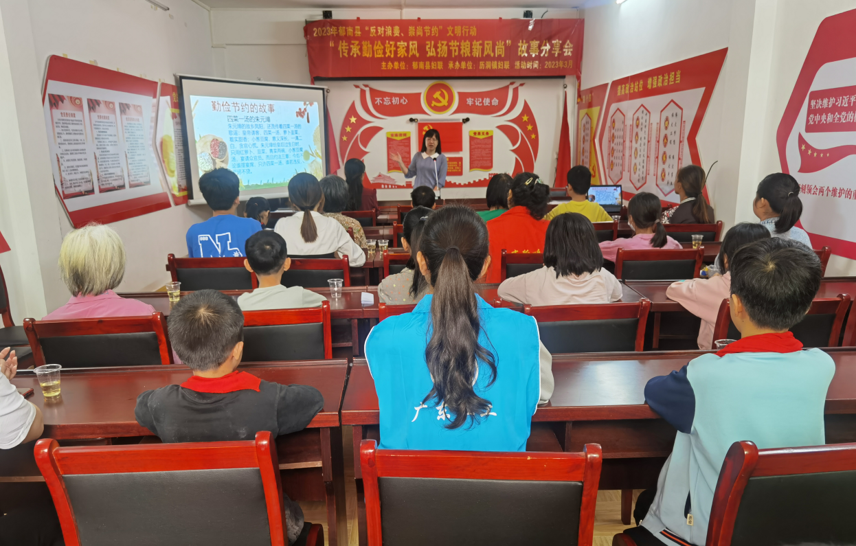 為大力弘揚中華民族勤儉節(jié)約的優(yōu)秀傳統(tǒng),大力宣傳節(jié)約光榮、浪費可恥的思想觀念;倡導(dǎo)孩子們從點滴做起、從我做起,讓勤儉節(jié)約成為社會文明新風(fēng)尚,3月23日,郁南縣婦聯(lián)聯(lián)同歷洞鎮(zhèn)婦聯(lián)在歷洞村開展“傳承勤儉好家風(fēng) 弘揚節(jié)糧新風(fēng)尚”故事分享會,約40多人參加了此次活動。