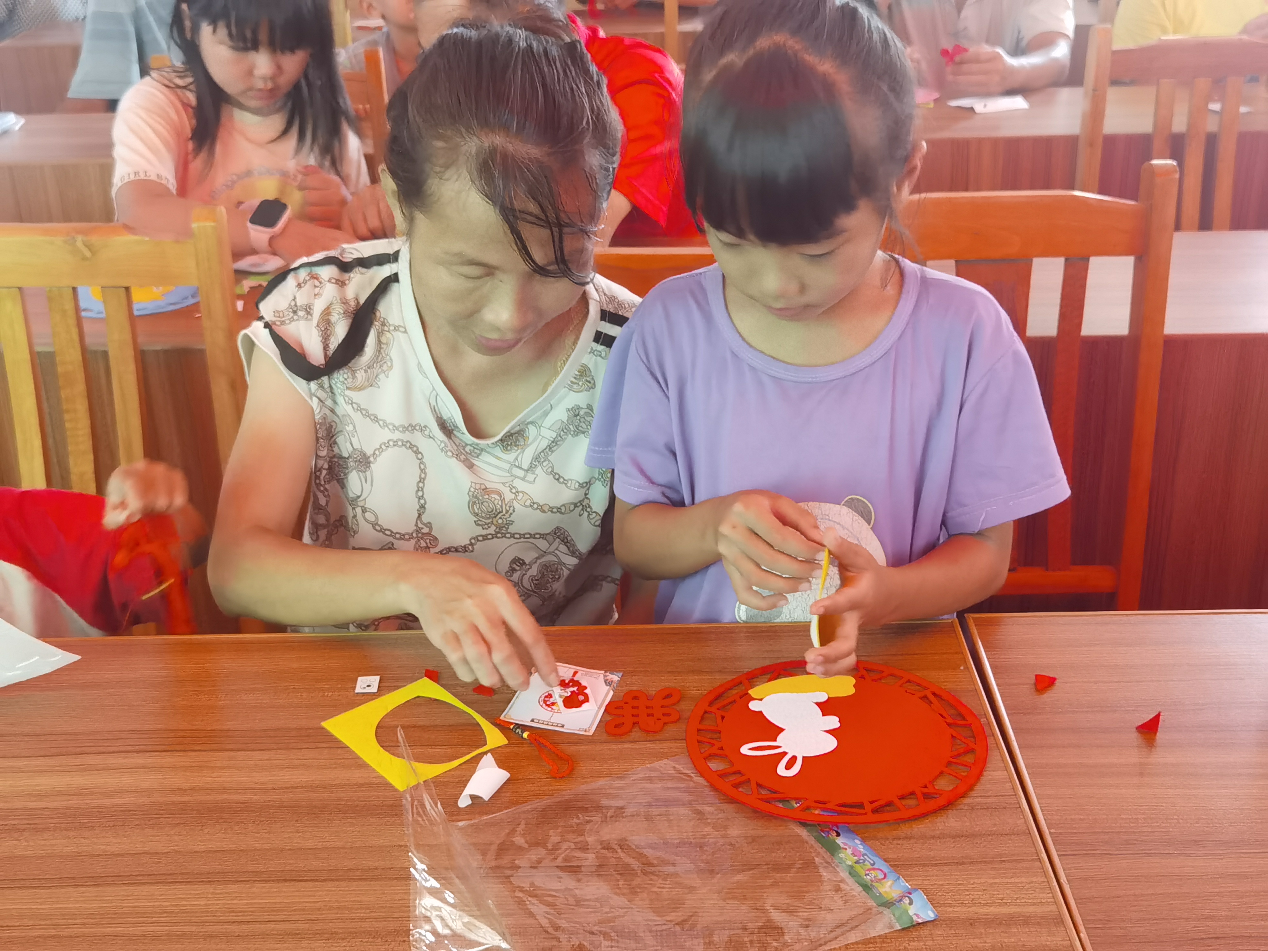 婦聯(lián)工作人員為大家細致講解了中秋節(jié)的來源、風俗習慣的知識點,與小朋友開展問答互動游戲,向大家講解家庭教育的相關知識,讓孩子們與家長參與到中秋節(jié)“家風”主題活動中,在互動過程中拉近親子關系,共同感受傳統(tǒng)佳節(jié)的快樂。隨后,工作人員詳細講解了中秋節(jié)掛飾的制作流程,插銷、穿繩、貼紙成型。孩子們躍躍欲試,迫不及待地拿起了制作材料,在家長的幫助配合下,小朋友們完成了手工制作,大家臉上露出燦爛而幸福的笑容。