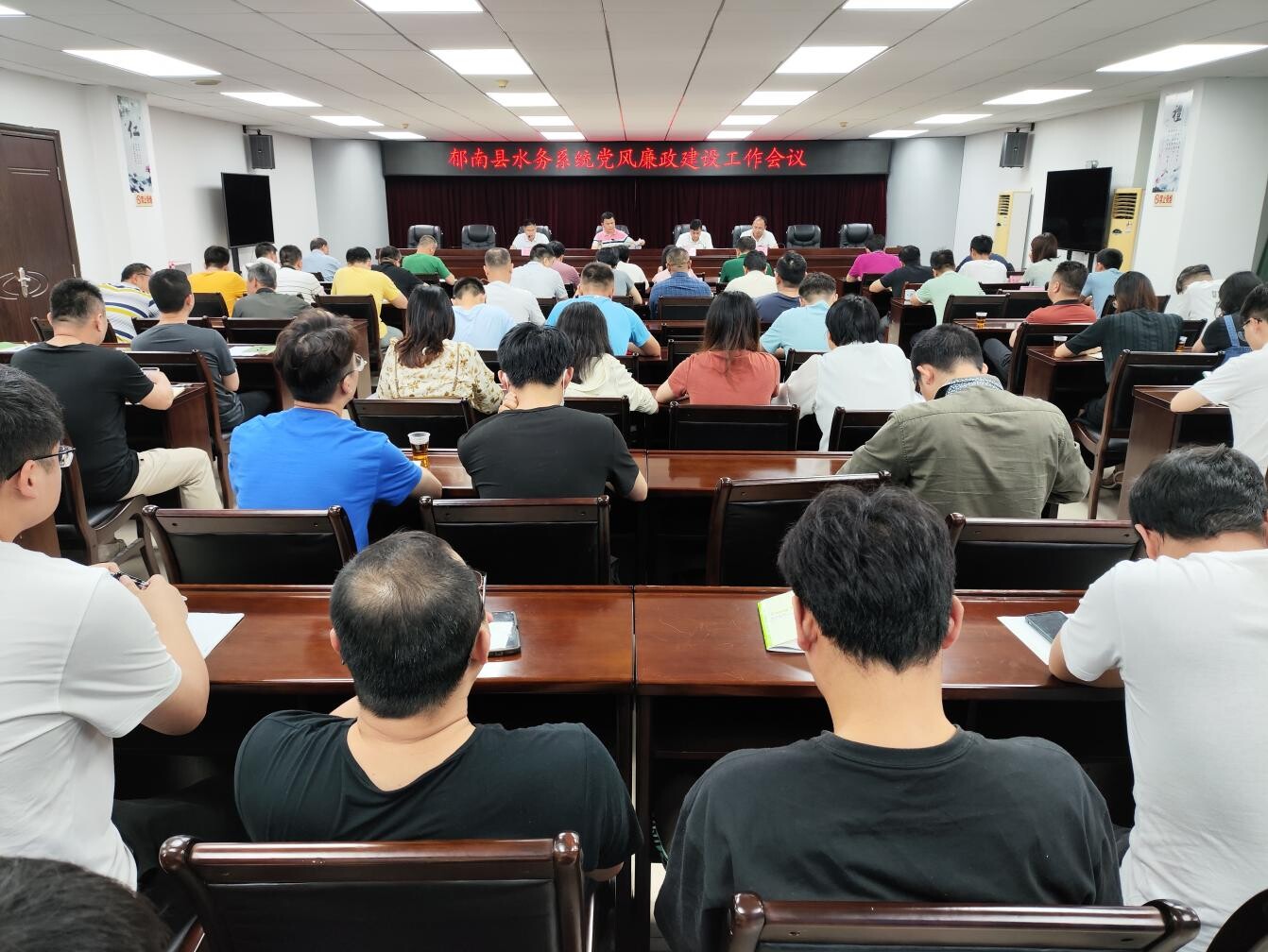 4月15日,郁南縣水務(wù)局召開郁南縣水務(wù)系統(tǒng)黨風(fēng)廉政建設(shè)工作會議,會議傳達(dá)學(xué)習(xí)了習(xí)近平總書記在紀(jì)委全會上的重要講話和省、市、縣紀(jì)委全會精神,總結(jié)去年黨風(fēng)廉政工作,分析研判目前水利行業(yè)廉政風(fēng)險(xiǎn)形勢,并部署今年黨風(fēng)廉政工作。局科級干部、股室負(fù)責(zé)人及局機(jī)關(guān)全體人員共80多人參加會議。