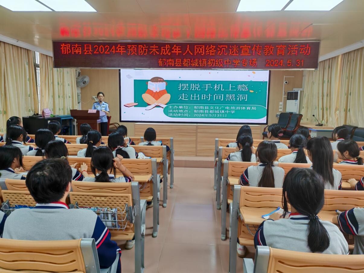 未成年人承載著祖國的未來和希望,保護未成年人的合法權益,讓他們在陽光下健康成長是全社會的共同責任。為了引導未成年人合理使用網(wǎng)絡,5月31日,縣文廣旅體局在郁南縣都城鎮(zhèn)初級中學組織開展了預防未成年人沉迷網(wǎng)絡宣傳教育活動,100多名師生參加。