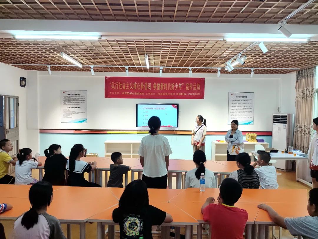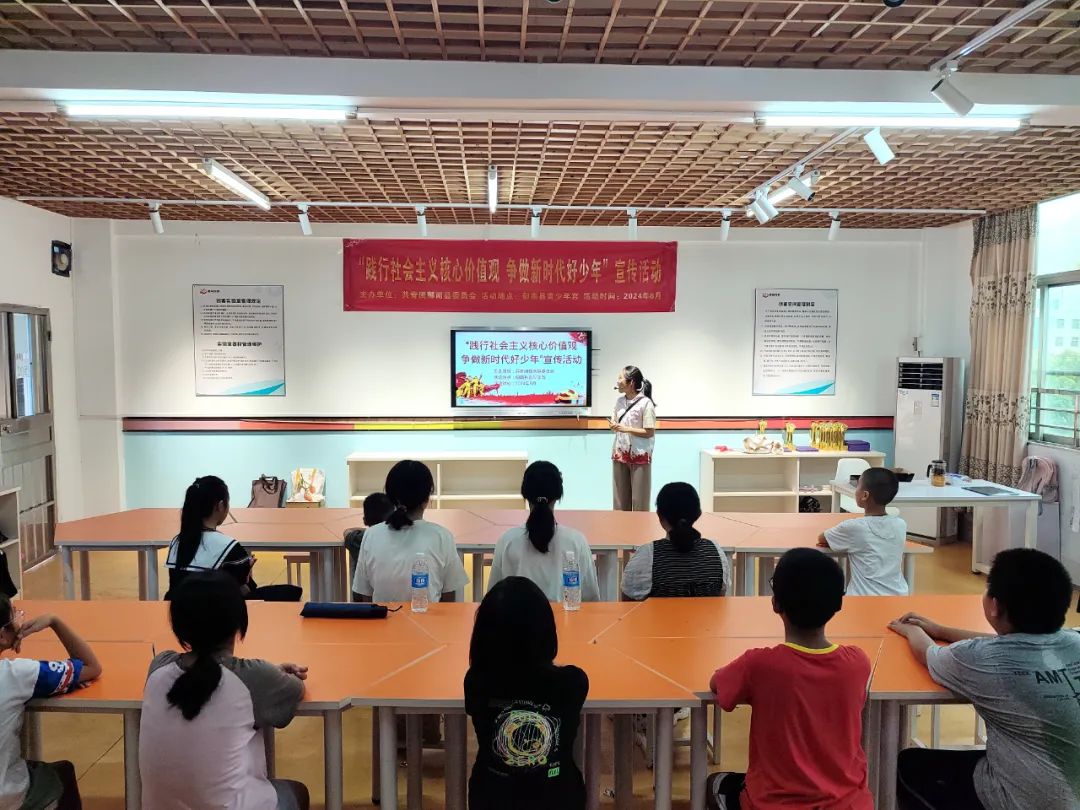 為深入貫徹落實(shí)黨的二十屆三中全會(huì)精神,積極培育和大力弘揚(yáng)社會(huì)主義核心價(jià)值觀,引導(dǎo)我縣青少年樹立正確的價(jià)值觀,激發(fā)他們的愛國(guó)熱情和社會(huì)責(zé)任感,8月28日,團(tuán)縣委聯(lián)合都城鎮(zhèn)團(tuán)委、都城鎮(zhèn)社工站,在縣青少年宮開展“踐行社會(huì)主義核心價(jià)值觀 爭(zhēng)做新時(shí)代好少年”宣傳活動(dòng)。