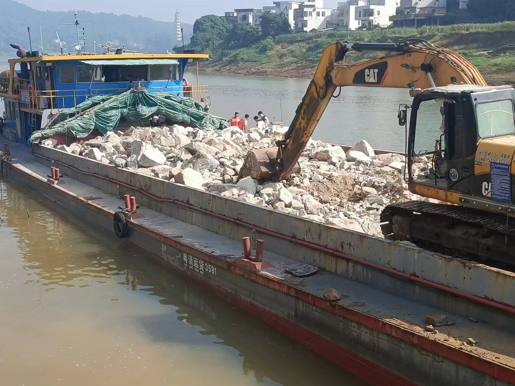 郁南縣2023年災(zāi)后恢復(fù)建設(shè)項(xiàng)目開(kāi)展水下拋石護(hù)腳作業(yè)