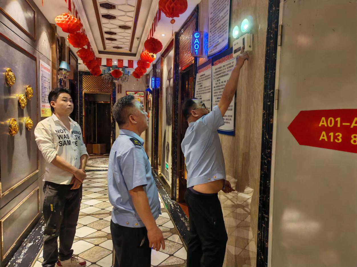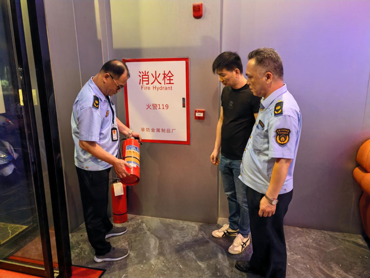 檢查行動中,郁南縣文廣旅體局執(zhí)法人員依據(jù)消防安全相關(guān)法律法規(guī)的要求,對歌舞娛樂場所消的防安全生產(chǎn)工作進行全方位檢查。重點檢查場所消防設(shè)施配備與維護情況,仔細查看滅火器是否在有效期內(nèi)、消火栓水壓是否正常、自動噴水滅火系統(tǒng)和火災自動報警系統(tǒng)能否正常運行,以及應急照明、疏散指示標志是否按規(guī)范設(shè)置且保持完好有效;同時,對場所疏散通道和安全出口進行實地檢查,確保疏散通道無占用、堵塞、封閉現(xiàn)象,安全出口保持暢通,疏散門開啟方向符合要求;此外,還對場所消防安全管理制度落實情況進行查驗,了解各場所是否制定消防應急預案,是否定期組織員工開展消防演練,確保員工熟悉消防器材使用方法和應急疏散流程。