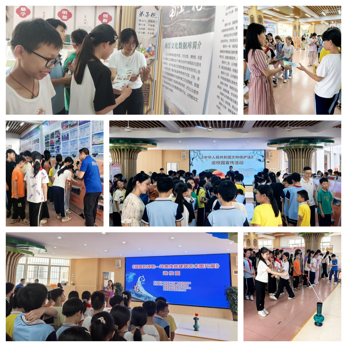 2025年6月24、25日,由郁南縣文化圖書和博物館承辦的《凝固的詩歌——嶺南傳統(tǒng)建筑藝術(shù)圖片展》《探尋“最早廣東人”——磨刀山遺址圖片展》走進校園,并同步開展《中華人民共和國文物保護法》進校園宣傳活動。