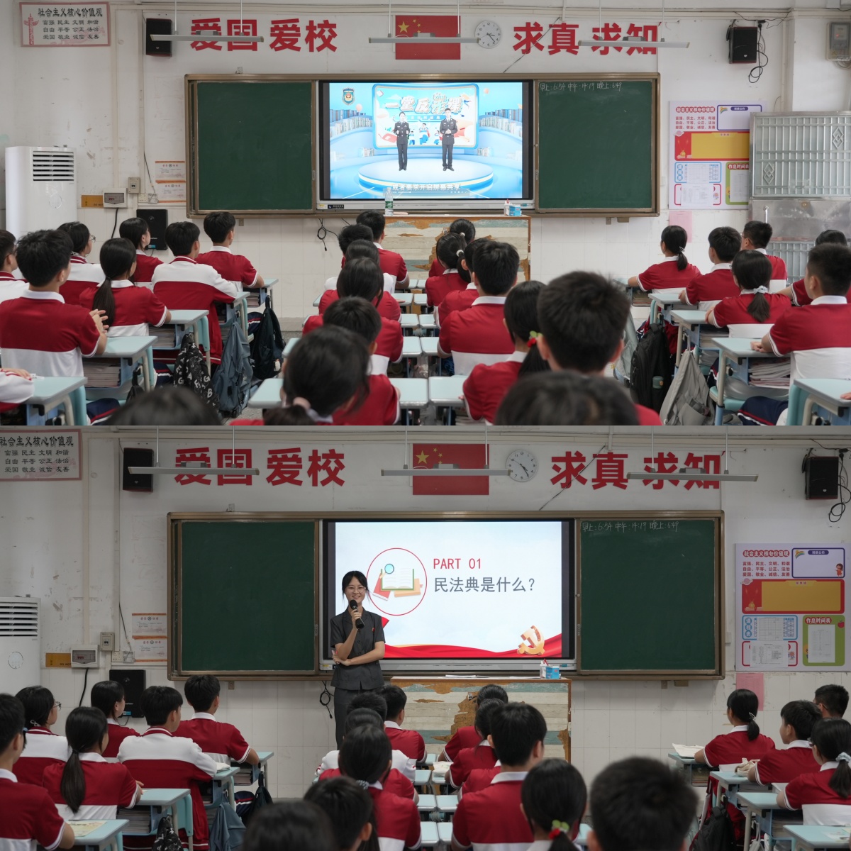 活動(dòng)中,學(xué)生們先觀看了反詐宣傳視頻,聽(tīng)取了12355心理老師講授的心理講座。隨后,郁南法院干警以“民法典——守護(hù)少年的你”為題進(jìn)行普法宣講,通過(guò)“案例講解+互動(dòng)問(wèn)答”的形式,將專(zhuān)業(yè)知識(shí)轉(zhuǎn)化為通俗易懂的語(yǔ)言,解讀與同學(xué)們學(xué)習(xí)生活密切相關(guān)的法律條文,生動(dòng)剖析校園欺凌、毒品犯罪、“校園貸”等常見(jiàn)風(fēng)險(xiǎn)背后的法律問(wèn)題,明確告知同學(xué)們“行為邊界”與“法律后果”,引導(dǎo)其增強(qiáng)法律意識(shí),樹(shù)牢法治觀念。