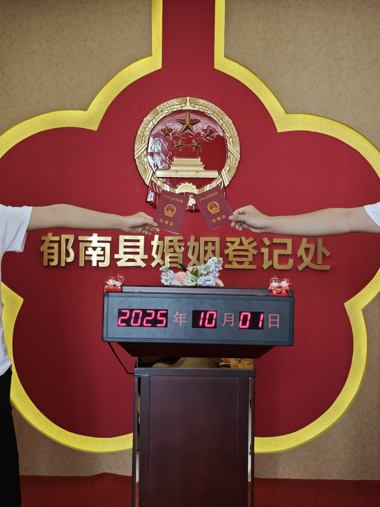 當(dāng)日上午8時(shí)起,新人陸續(xù)抵達(dá)登記處,在工作人員的引導(dǎo)下有序辦理手續(xù)。從材料核對(duì)到信息確認(rèn),從簽字領(lǐng)證到合影留念,每一個(gè)環(huán)節(jié)都充滿溫情?!澳茉趪?guó)慶節(jié)這天領(lǐng)證,讓小家的幸福遇上大國(guó)的生日,太有意義了!”剛領(lǐng)到結(jié)婚證的新人謝先生難掩喜悅。此外,工作人員還現(xiàn)場(chǎng)開(kāi)展婚俗改革宣傳,倡導(dǎo)婚事新辦、儉辦,引導(dǎo)新人樹(shù)立健康文明的婚姻家庭觀念 。