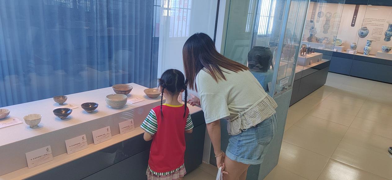 活動(dòng)緊緊圍繞“華誕月圓?博物致知”雙節(jié)主題展開(kāi),主辦方精心設(shè)計(jì)了主題展覽與沉浸式體驗(yàn)兩大板塊,讓孩子和家長(zhǎng)既能學(xué)習(xí)歷史文化知識(shí),又能通過(guò)親身參與傳統(tǒng)文化技藝實(shí)踐,感受節(jié)日氛圍的同時(shí)加深對(duì)中華優(yōu)秀傳統(tǒng)文化的了解。在主題展覽環(huán)節(jié),大家共同參觀了“廉韻筆端 行廉致遠(yuǎn)”廉潔書(shū)畫(huà)展和歷史文物展廳,學(xué)習(xí)了《中華人民共和國(guó)文物保護(hù)法》。通過(guò)聆聽(tīng)講解員對(duì)館藏文物(筆化石、磨刀山遺址石器、古陶器、青銅器、民俗物品等)的介紹,大人和小朋友對(duì)郁南歷史文化發(fā)展脈絡(luò)有了更深入的了解。小朋友們在參觀過(guò)程中更是驚喜連連,聽(tīng)著講解員的講解,在各類(lèi)文物展示臺(tái)前流連忘返。