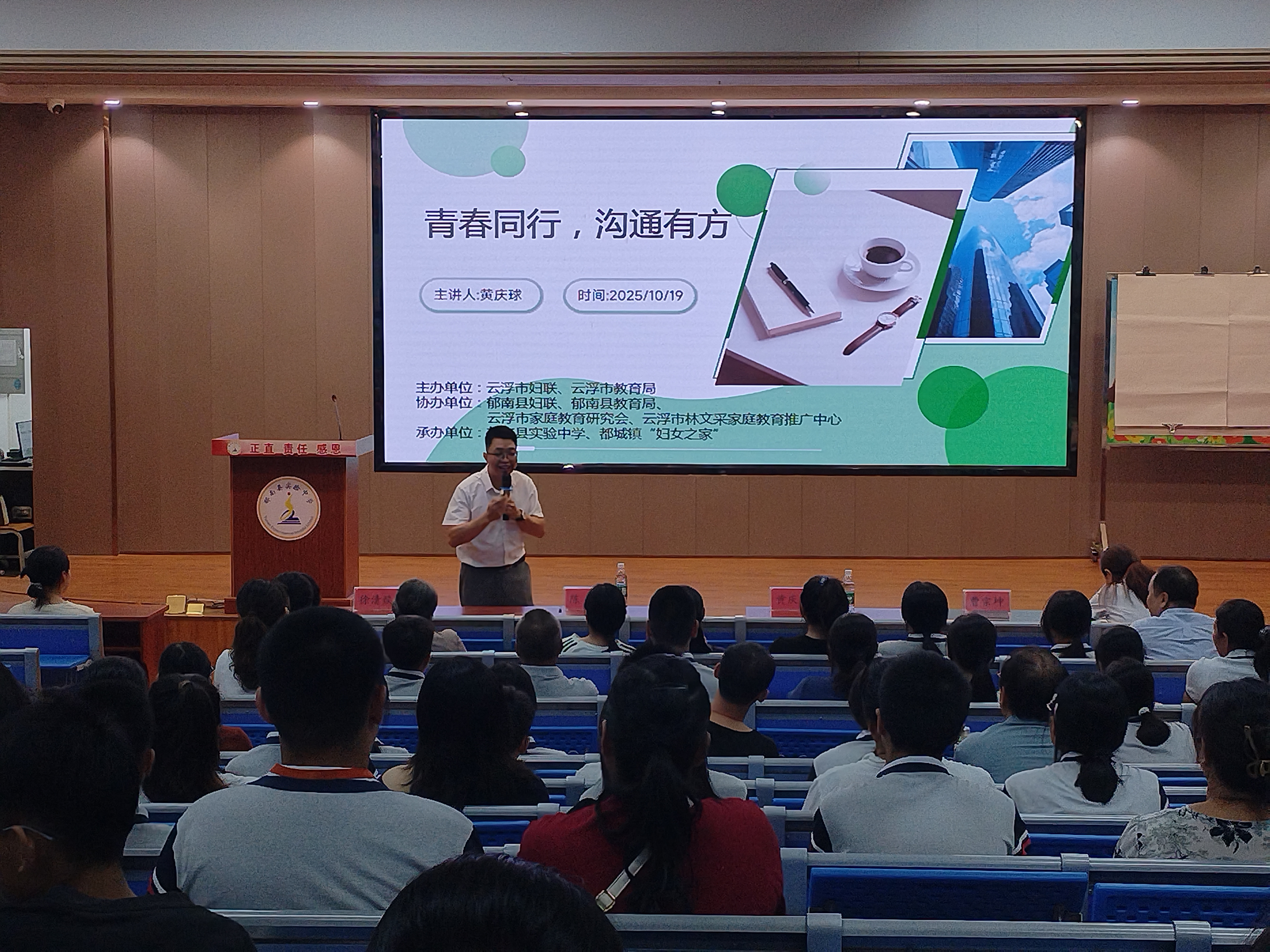 為更好推進(jìn)家校共育工作的實(shí)效性,助力家長(zhǎng)學(xué)習(xí)跟青春期孩子溝通的實(shí)用方法和技巧,促進(jìn)親子關(guān)系和諧發(fā)展,2025年10月19日晚,由云浮市婦聯(lián)、云浮市教育局主辦,郁南縣婦聯(lián)、郁南縣教育局、云浮市家庭教育研究會(huì)、云浮市林文采家庭教育推廣中心協(xié)辦的“共話家教,攜手成長(zhǎng)”——2025年“云浮家長(zhǎng)說(shuō)”家庭教育主題活動(dòng)在郁南縣實(shí)驗(yàn)中學(xué)學(xué)術(shù)報(bào)告廳成功舉行。