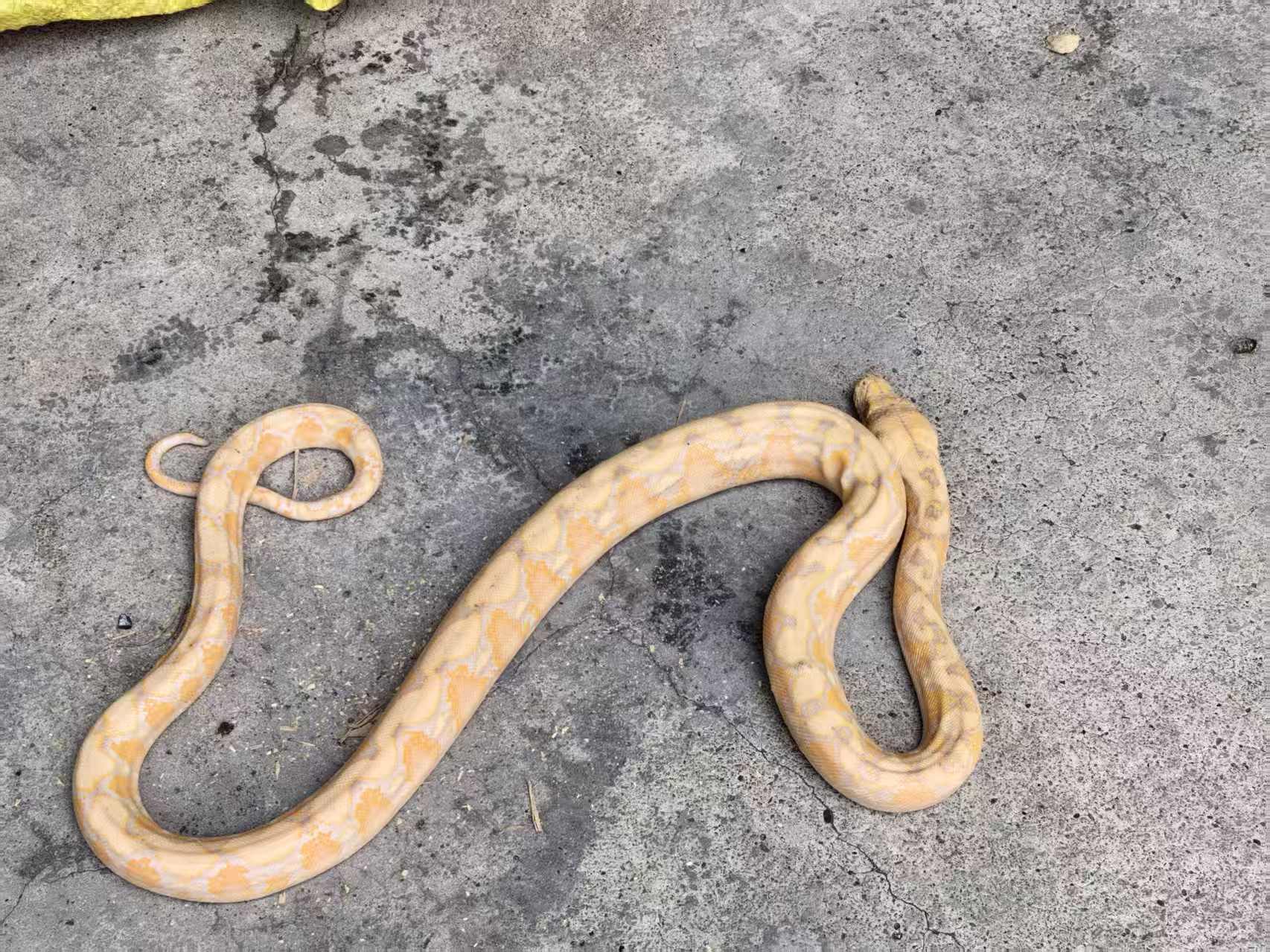 10月27日下午3時(shí)許,郁南縣林業(yè)局接到大灣鎮(zhèn)林業(yè)工作站的緊急來(lái)電,稱該鎮(zhèn)派出所民警在村民的協(xié)助下,成功控制了一條在村中發(fā)現(xiàn)的黃金色大蛇,請(qǐng)求林業(yè)部門(mén)派員進(jìn)行專業(yè)處置。據(jù)了解,當(dāng)日有大灣鎮(zhèn)村民在村內(nèi)意外發(fā)現(xiàn)了這條通體金黃的蛇,因其外形特殊,不敢擅自處理,遂立即向當(dāng)?shù)嘏沙鏊鶊?bào)告。大灣鎮(zhèn)派出所接報(bào)后迅速出警,為確保村民和蛇的安全,民警在現(xiàn)場(chǎng)將蛇捕獲,并帶回所內(nèi)暫時(shí)安置。