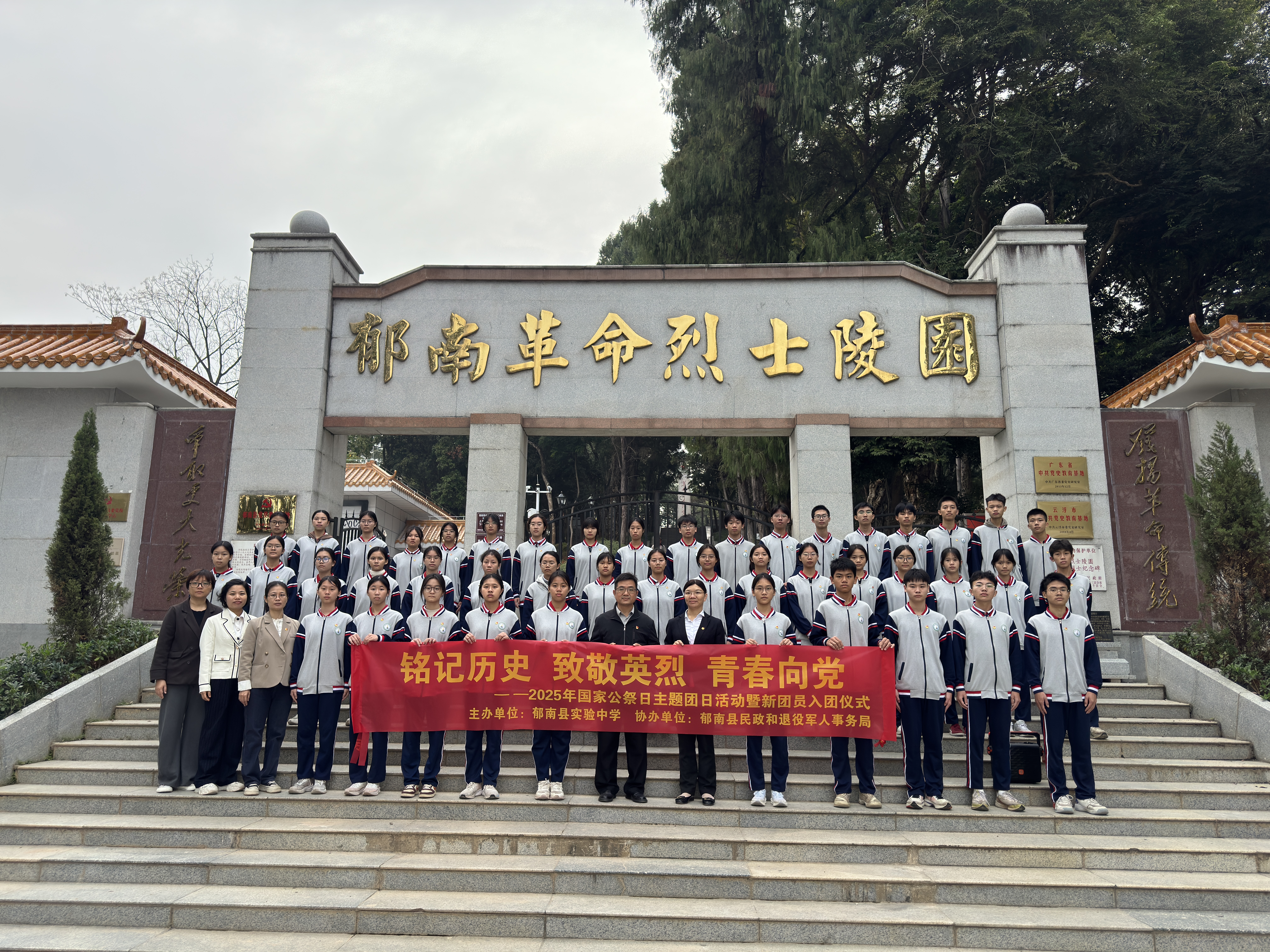 2025年12月12日,在國家公祭日來臨之際,郁南縣民政和退役軍人事務(wù)局聯(lián)合縣實驗中學(xué)在革命烈士陵園舉辦“銘記歷史 致敬英烈 青春向黨”主題團日活動暨新團員入團儀式,緬懷革命先烈,傳承紅色精神,激勵青少年堅定理想信念。