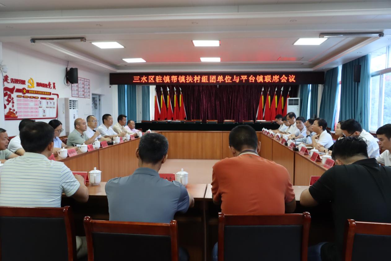 當(dāng)日,三水區(qū)大塘鎮(zhèn)政府、區(qū)經(jīng)濟(jì)和科技促進(jìn)局、區(qū)政務(wù)服務(wù)和數(shù)據(jù)管理局、區(qū)人民醫(yī)院(南方醫(yī)科大學(xué)珠江醫(yī)院三水醫(yī)院)、區(qū)國裕飲食管理有限公司的有關(guān)領(lǐng)導(dǎo),“村企共建、村村結(jié)對”村企代表等一行抵達(dá)平臺鎮(zhèn)政府,共同參與“三水區(qū)組團(tuán)幫扶單位·郁南縣平臺鎮(zhèn)駐鎮(zhèn)幫鎮(zhèn)扶村聯(lián)席會議”。