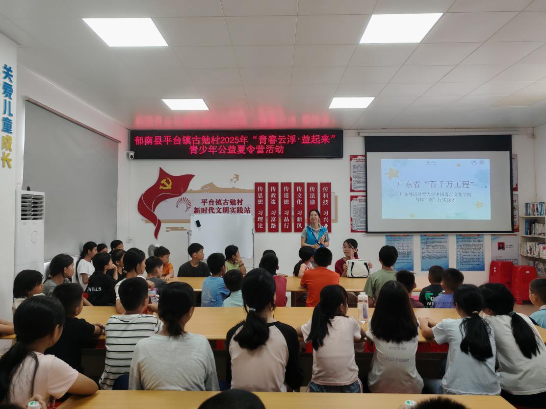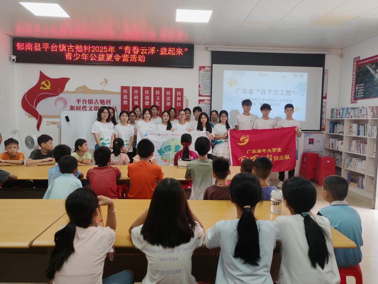 據(jù)悉,承擔(dān)本次夏令營(yíng)教學(xué)任務(wù)的高校突擊隊(duì),是由廣東外語外貿(mào)大學(xué)中國(guó)語言文化學(xué)院 16 名學(xué)生組成的“與你‘童’行實(shí)踐團(tuán)”。該團(tuán)隊(duì)通過開展學(xué)科輔導(dǎo)、素質(zhì)拓展與創(chuàng)新課程,著力彌補(bǔ)鄉(xiāng)村教育短板,激發(fā)學(xué)生學(xué)習(xí)興趣與創(chuàng)新能力,為鄉(xiāng)村教育注入青年力量,助力“百千萬工程”基礎(chǔ)教育提質(zhì)增效。