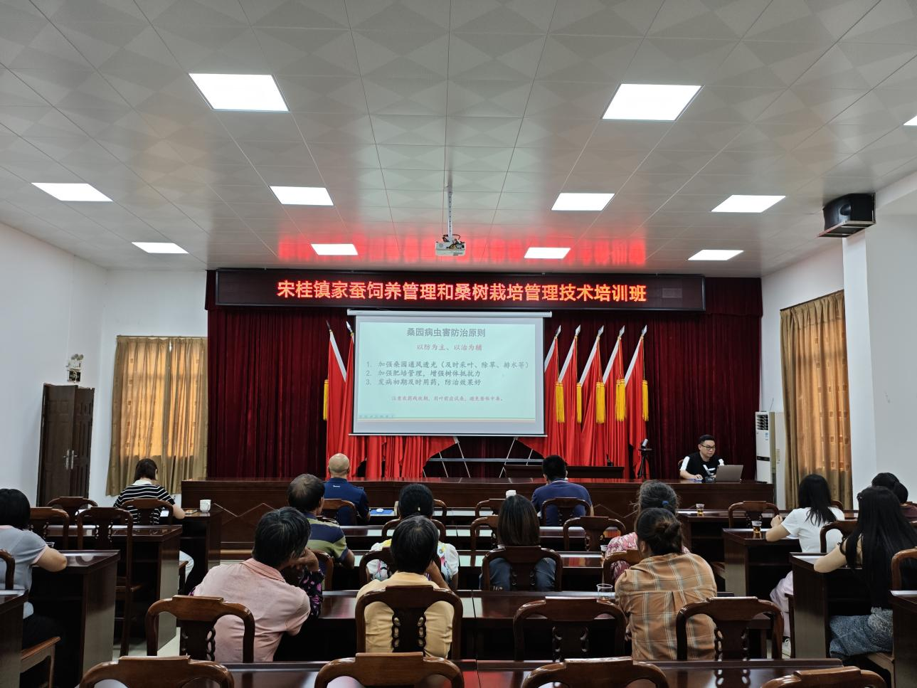 為落實(shí)廣東省委、省政府關(guān)于實(shí)施“百千萬工程”的工作部署,提高宋桂鎮(zhèn)蠶桑種養(yǎng)與加工技術(shù)水平,連日來,廣東省農(nóng)業(yè)科學(xué)院蠶業(yè)與農(nóng)產(chǎn)品加工研究所組織科技特派員團(tuán)隊(duì)以“家蠶飼養(yǎng)管理與桑樹栽培管理技術(shù)”“蠶桑資源綜合利用技術(shù)與蠶病防控技術(shù)”為專題到宋桂鎮(zhèn)開展培訓(xùn)班。
