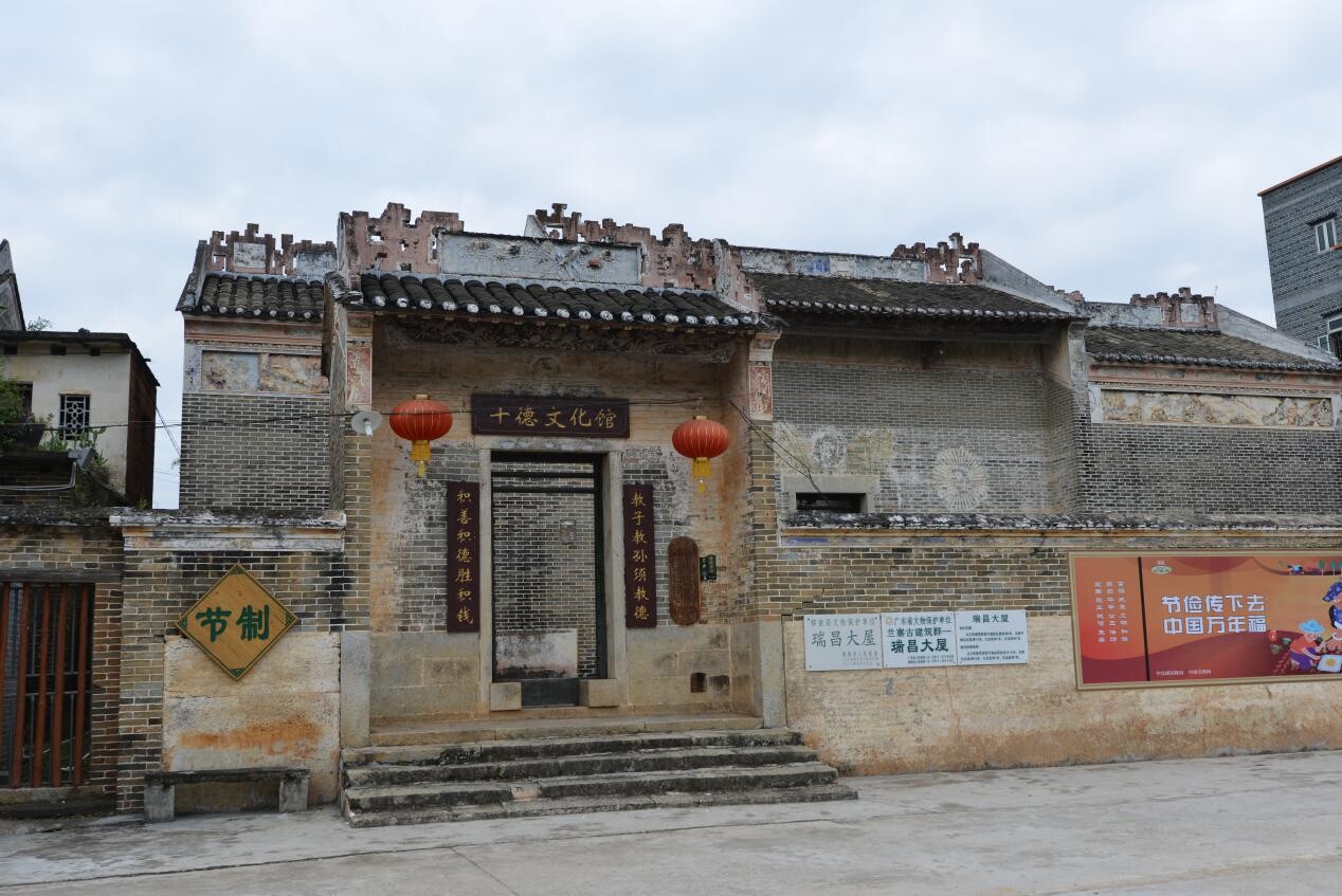 瑞昌大屋(十德文化館)。十德弟又叫瑞昌大屋,是蘭寨建筑之魂。為了弘揚(yáng)優(yōu)秀傳統(tǒng)文化、林氏十德和家訓(xùn),2013年建成十德文化館。林氏十德與新時(shí)期廣東精神、云浮精神一脈相承。“教子教孫須教德,積善積德勝積錢”此聯(lián)是林氏教育后人的最好詮釋。屋檐上的木雕花了工匠六年時(shí)間雕刻而成,藝術(shù)價(jià)值極高。