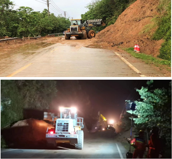 ▲爭分奪秒對受災(zāi)公路進(jìn)行搶修搶通