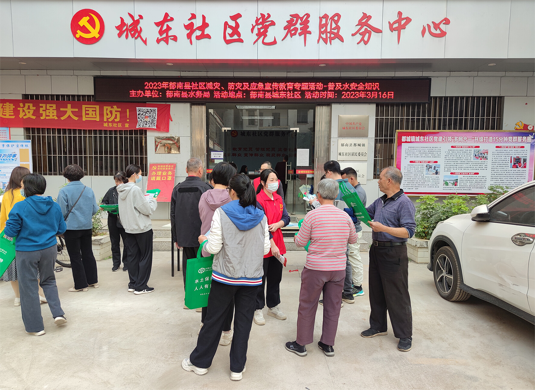 為進一步提高居民的減災防災意識和自救互救能力,筑牢減災防災的人民防線,營造良好的社會氛圍。3月16日上午,縣水務局組織工作人員聯(lián)合城東社區(qū)開展2023年郁南縣社區(qū)減災、防災及應急宣傳教育專題活動,向社區(qū)群眾普及水安全知識。