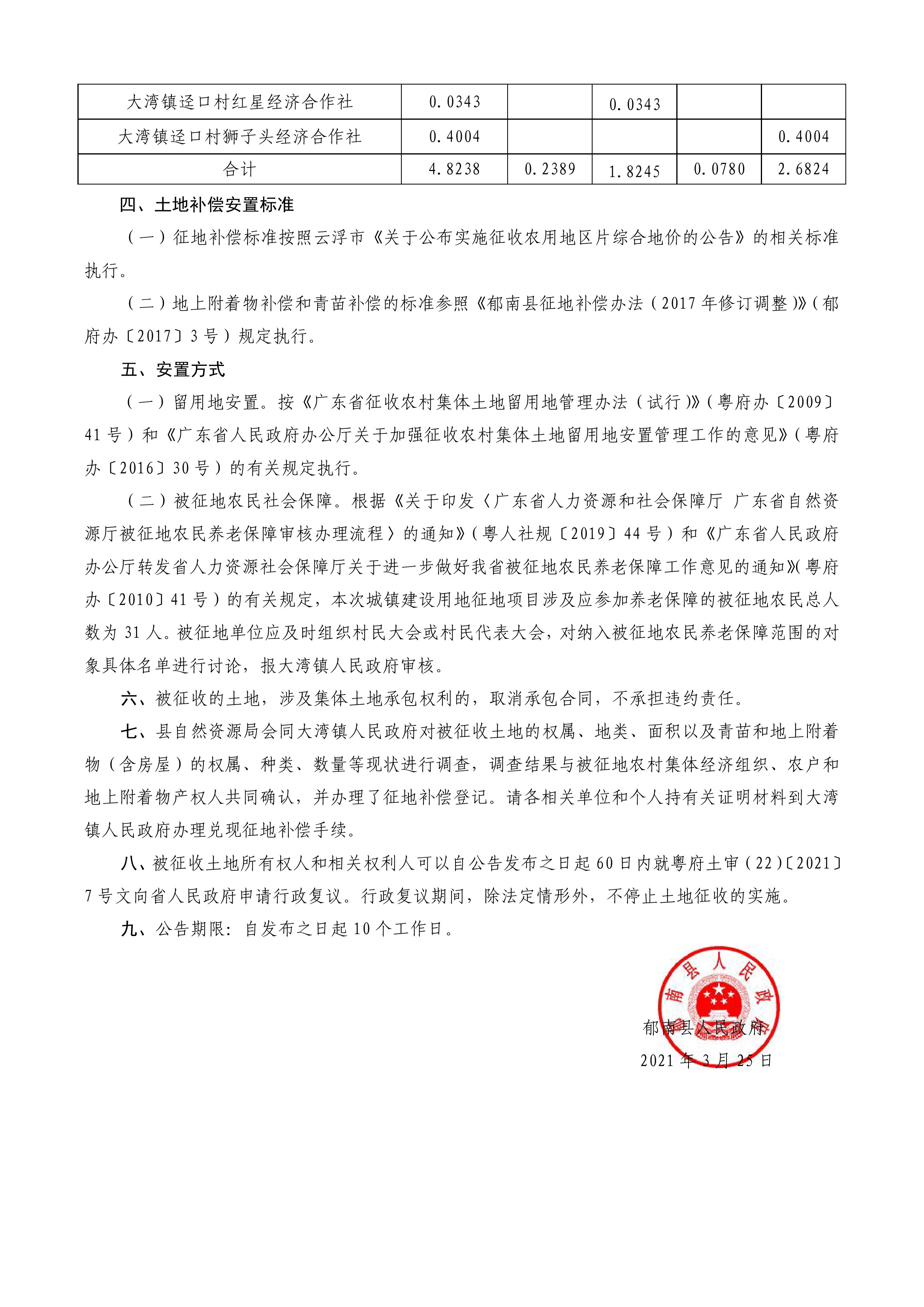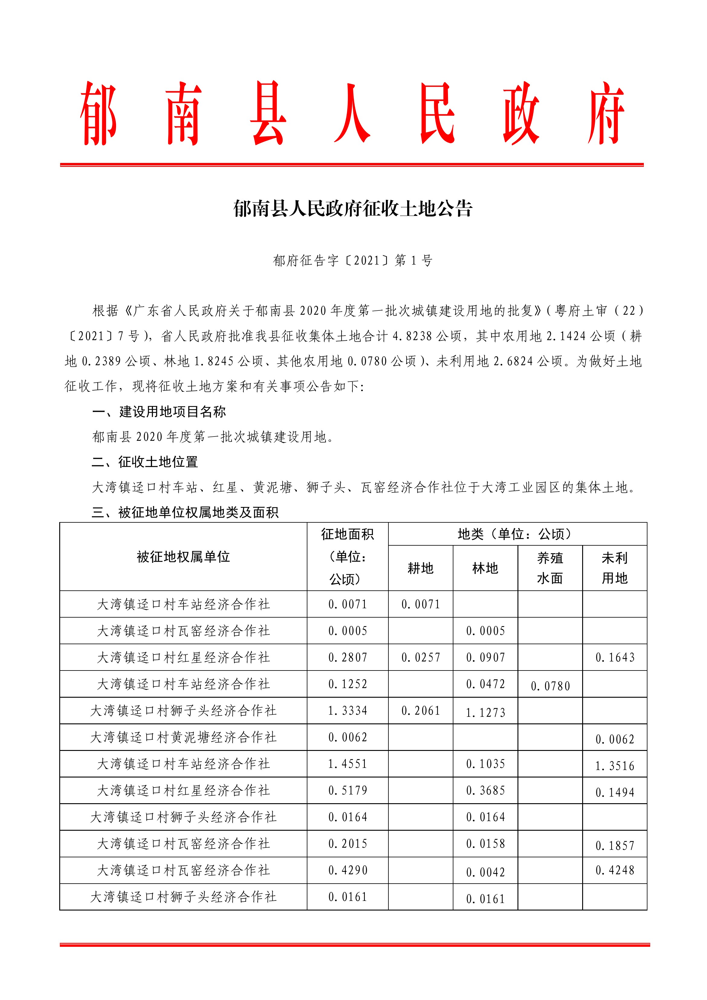郁南縣人民政府征收土地公告(郁府征告字〔2021〕第1號(hào))