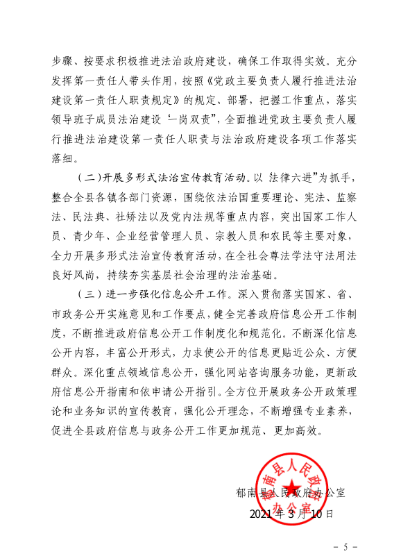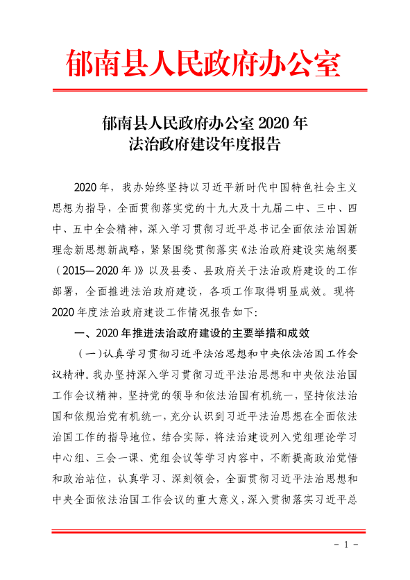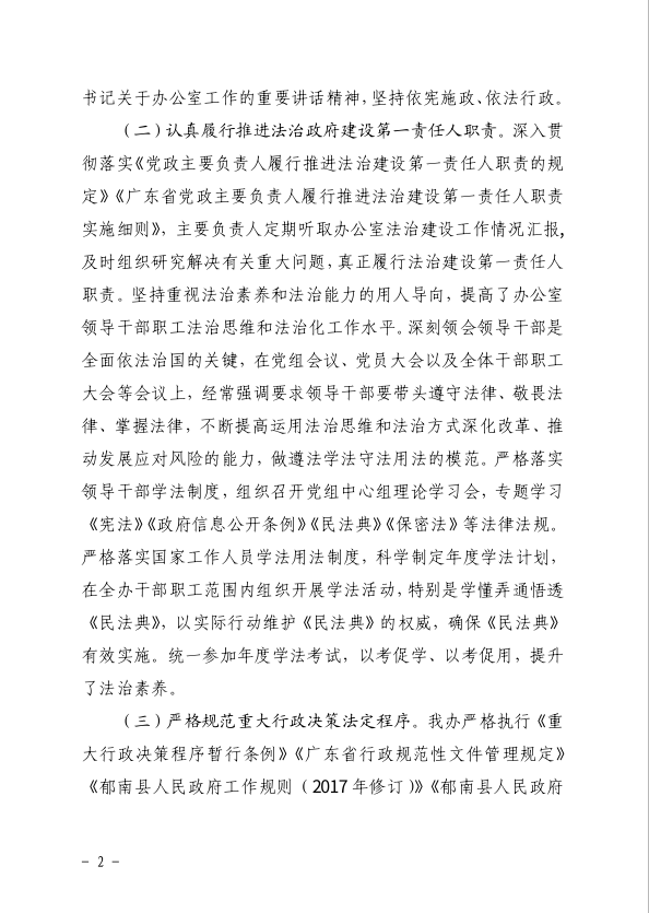 郁南縣人民政府辦公室2020年法治政府建設(shè)年度報(bào)告