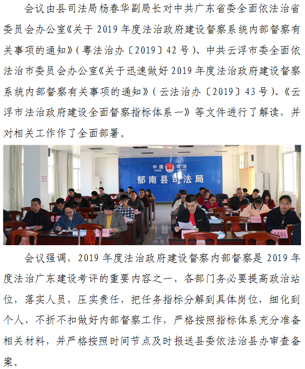 郁南縣委依法治縣辦組織召開(kāi)2019年度法治政府建設(shè)督察系統(tǒng)內(nèi)部督察工作會(huì)議