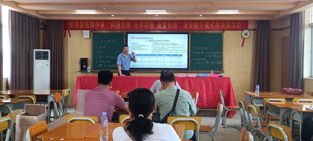為改進(jìn)課堂教學(xué)模式和教學(xué)方法,促進(jìn)教師專業(yè)成長(zhǎng),充分發(fā)揮名師工作室的模范引領(lǐng)和輻射作用,5月18日,廣東省羅文成名教師工作室成員、廣東省許勇輝名教師工作室成員、廣東省黃強(qiáng)名工作室成員、廣東省潘潔蘭名教師工作室成員、佛山市許勇輝基礎(chǔ)教育領(lǐng)軍人才工作室及順德區(qū)許勇輝特級(jí)教師工作室聯(lián)合到郁南縣連灘中學(xué)開(kāi)展“名師名課”送課下鄉(xiāng)研修活動(dòng)。本次研修活動(dòng)有七年級(jí)語(yǔ)文、數(shù)學(xué)、信息,八年級(jí)政治、物理、語(yǔ)文,高一語(yǔ)文、高中信息五個(gè)學(xué)科,分四個(gè)環(huán)節(jié)進(jìn)行,有一百多教師參與。