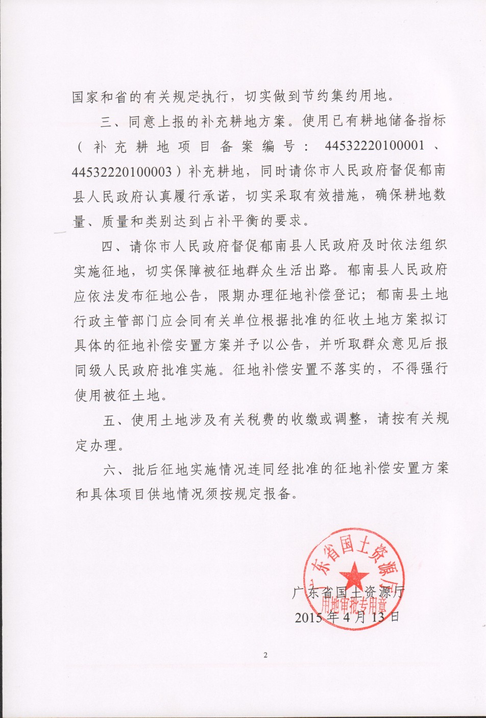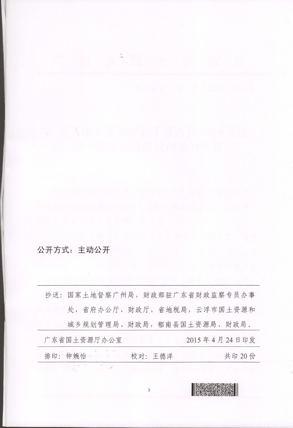 廣東省國土資源廳關(guān)于郁南縣2014年度第一批次城鎮(zhèn)建設(shè)用地的批復(fù)