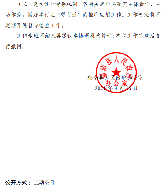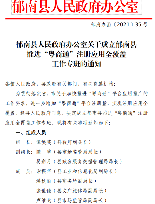 郁南縣人民政府辦公室關于成立郁南縣推進“粵商通”注冊應用全覆蓋工作專班的通知(郁府辦函〔2021〕35號)